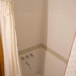 Os banheiros com bidé e chuveiro estão presentes nos quartos.